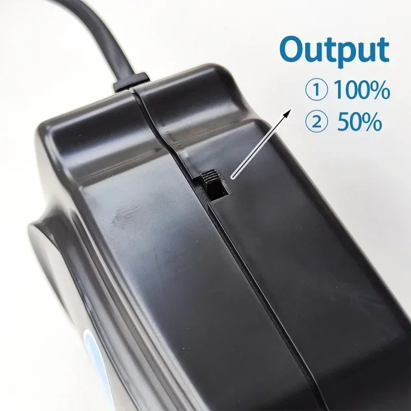 The air pump is preset with two levels of output, 50% and 100% respectively.