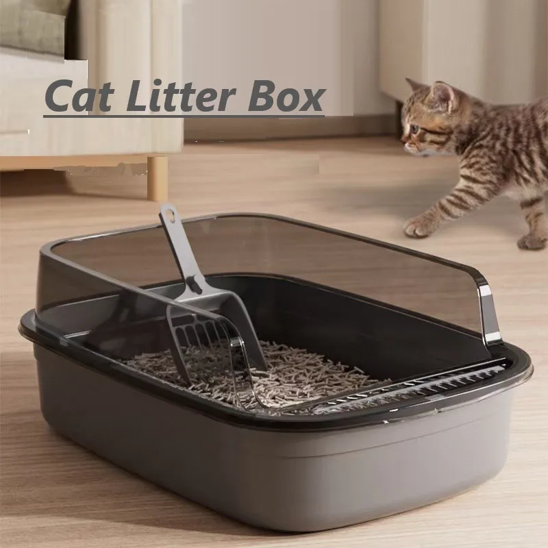 Cat Litter Box Kitty Sandbox Semi-enclosed High Side Splashproof Cat Toilet Pet Bedpans with Litter Scoop Cleaning Cat Supplies