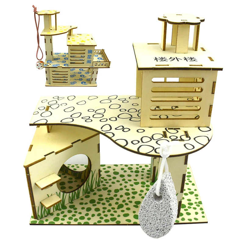 Design: Wide entrance and hollow design, for keeping cool in summer or warm in winter, multi-storey. Promote small pet animals nesting and chewing instincts. for hamster, mouse, rabbit, chinchilla and other small animals.