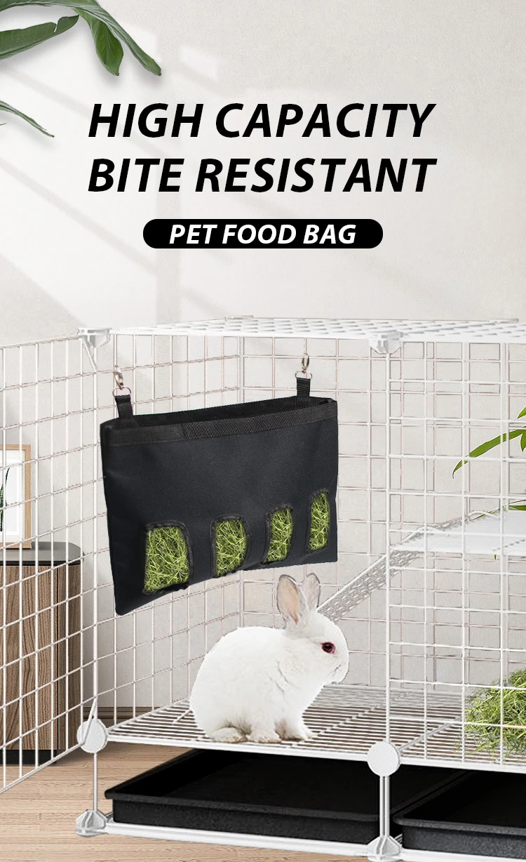 Rabbit Hay Bag Hanging Pouch Feeder Holder Black Durable Feeding Dispenser Container for Rabbit Guinea Pig Small Animals