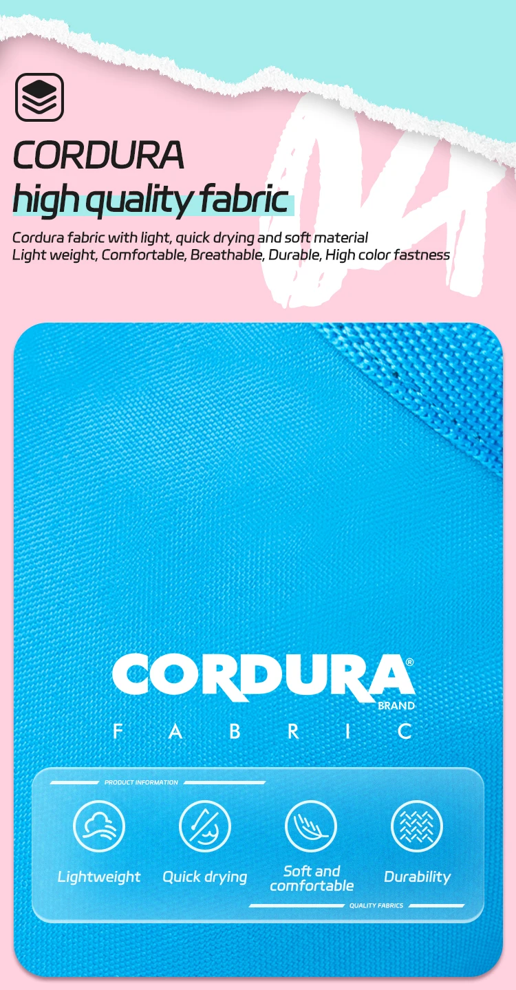Cordura fabric with light, quick drying and soft materialLight weight, Comfortable, Breathable, Durable, High color fastness