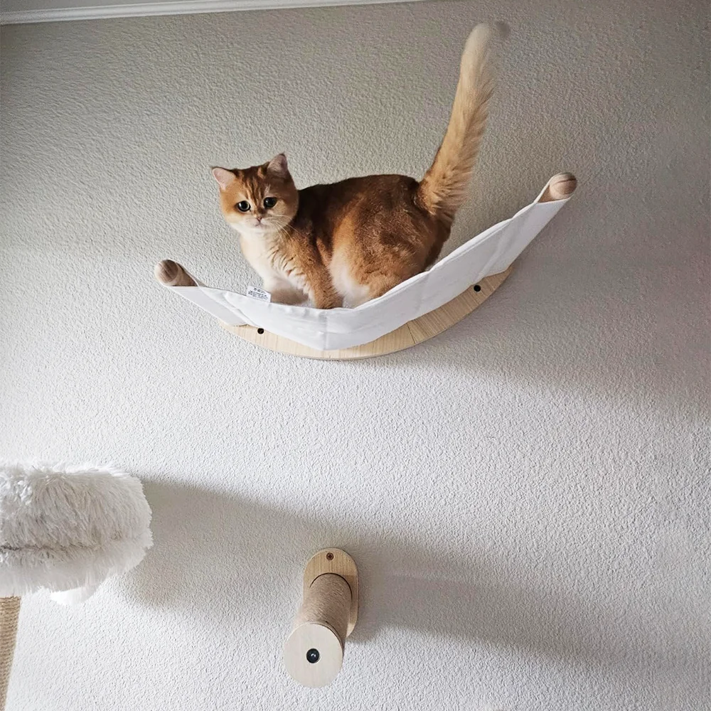 Our durable wall-mounted cat furniture is designed for safety and comfort. The hammock doubles as a wall bed for cats.